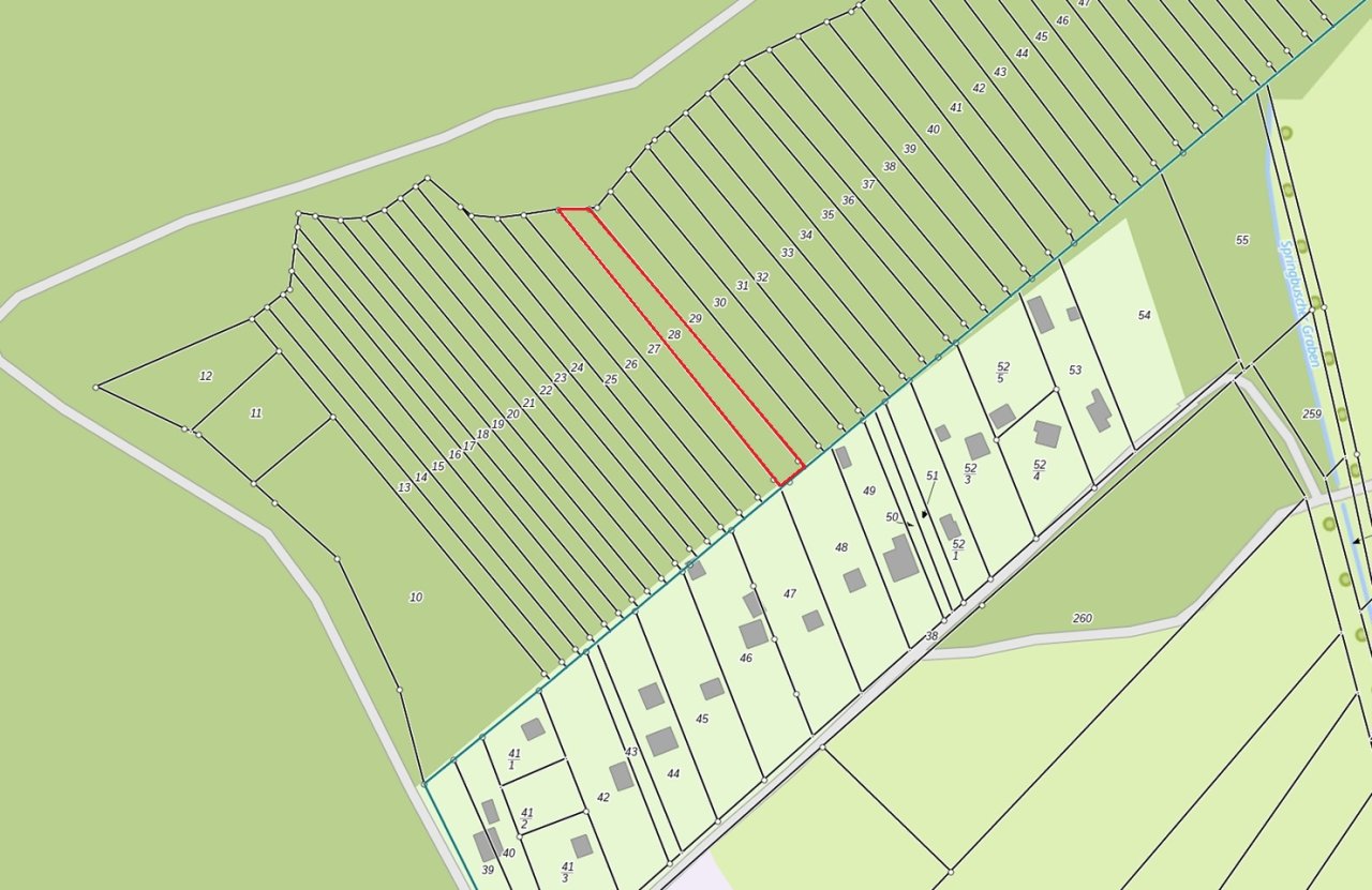 Die schmal geschnittene Verkaufsfläche ist Bestandteil eines größeren Waldgebietes. Die Bestockung besteht lt. Angabe des Voreigentümers aus ca. 80-jährigen Erlen.