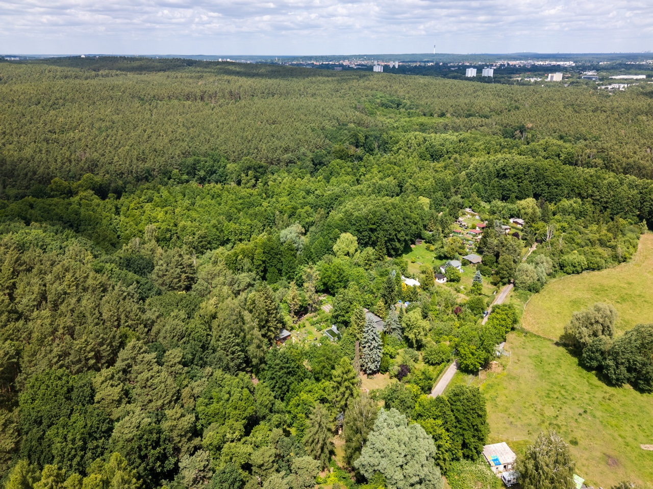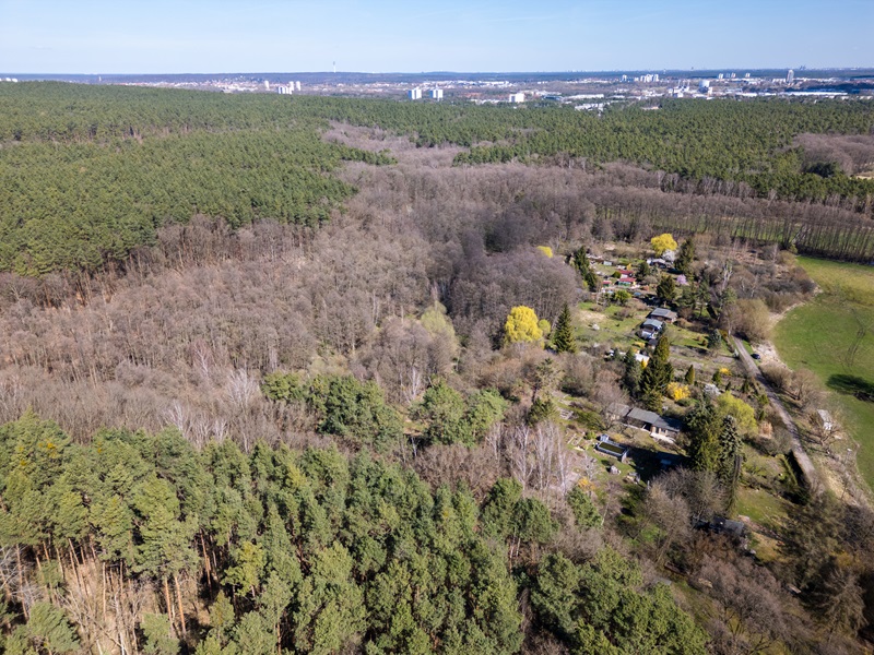 Mischwald in direkter Nachbarschaft von Wochenendhäusern am Potsdamer Stadtrand