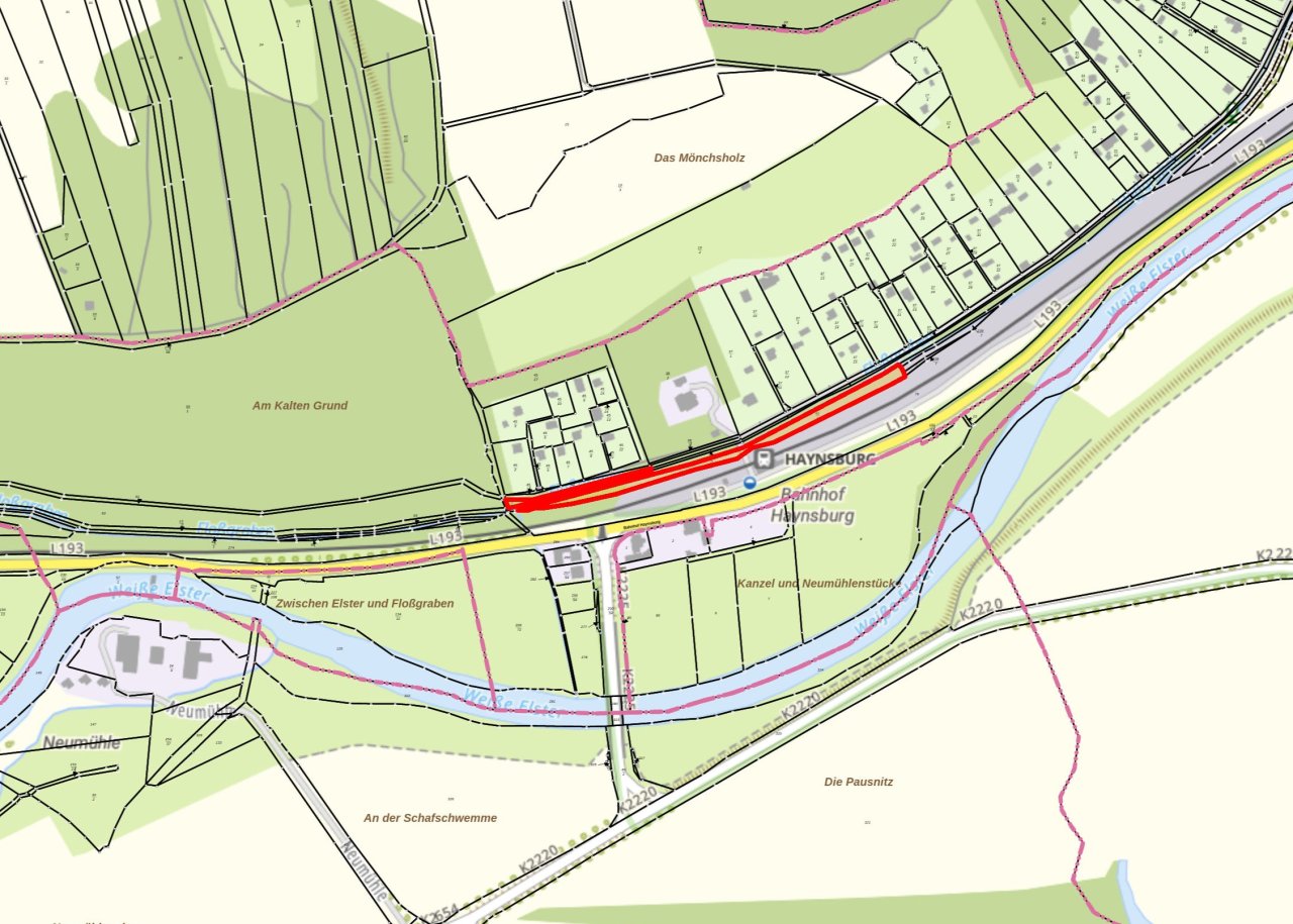 Zum Aufruf kommen zwei durch den Floßgraben getrennten Gehölzflächen gegenüber des ehemaligen Bahnhofs Haynsburg an der L193 mit einer summierten Größe von 3.187 m²
