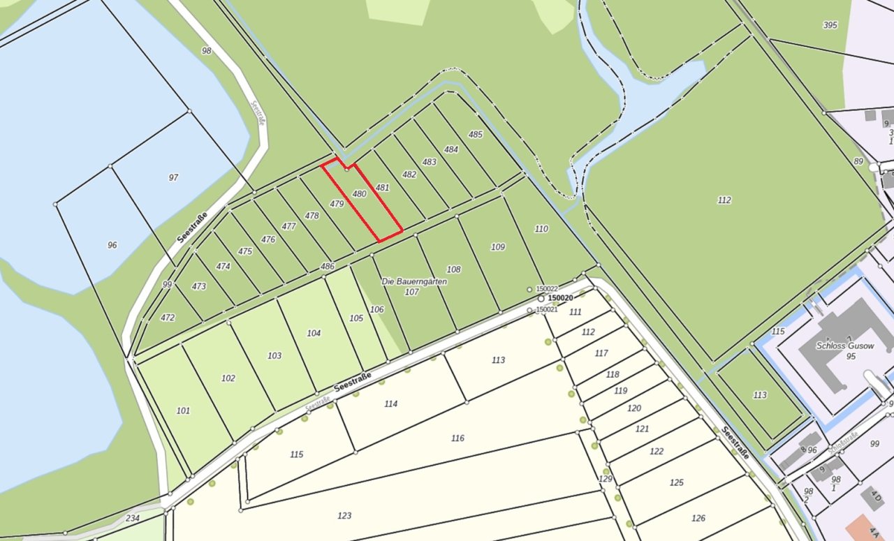• Lageskizze - Flurstück 480 - Vertragsfreie Waldfläche nahe dem Baggersee & dem Schloss Gusow
