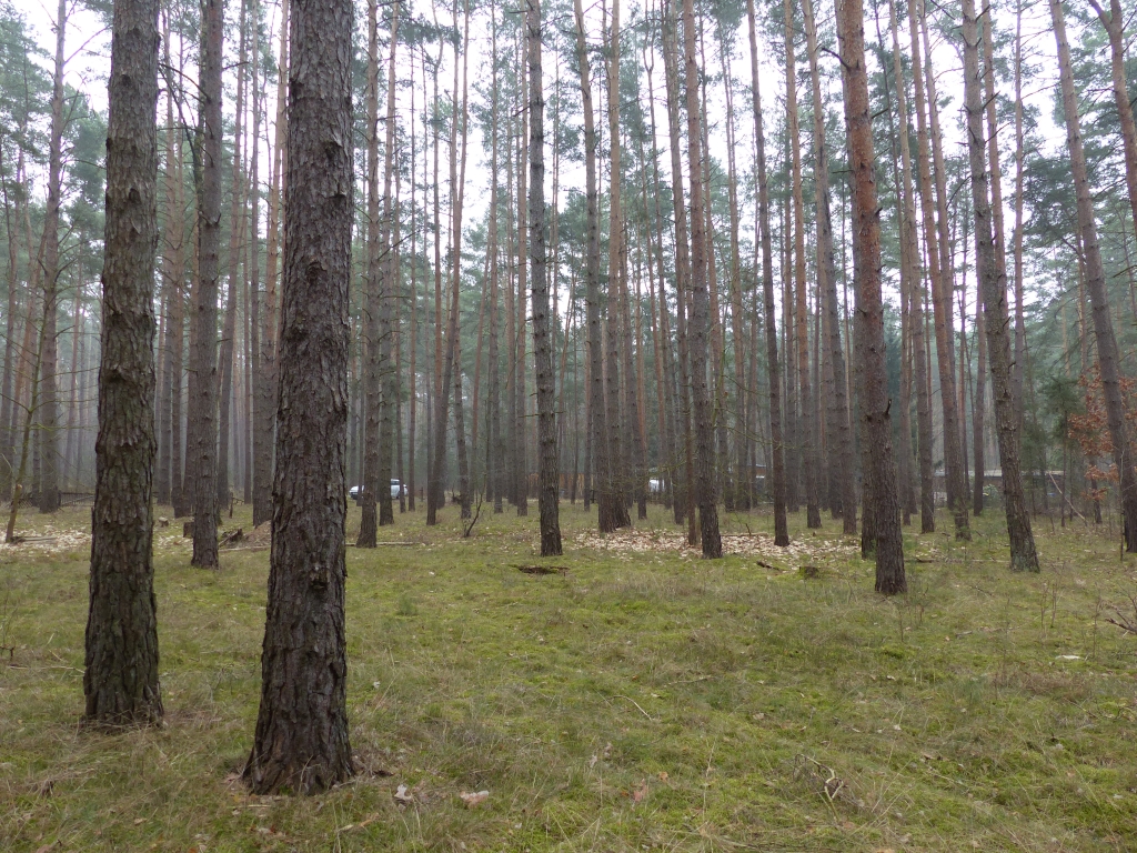 Bei dem ungenutzten Grundstück handelt es sich um eine Waldfläche, die mit Kiefern im Reinbestand sowie mit vereinzelten anderen Laubholzarten (u.a. Birke, Eiche) im Unterstand bestockt ist und geringfügige Mengen an Totholz aufweist. Der Bodenbewuchs setzt sich vorrangig aus Gräsern und Moos zusammen.