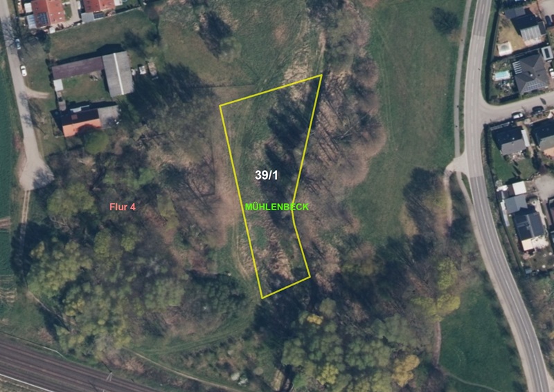 Zum Aufruf kommt das unregelmäßig geschnittene Flurstück 39/1 der Flur 4 mit einer Grundstücksgröße von 2.255 m², lt. Grundbuchangabe.