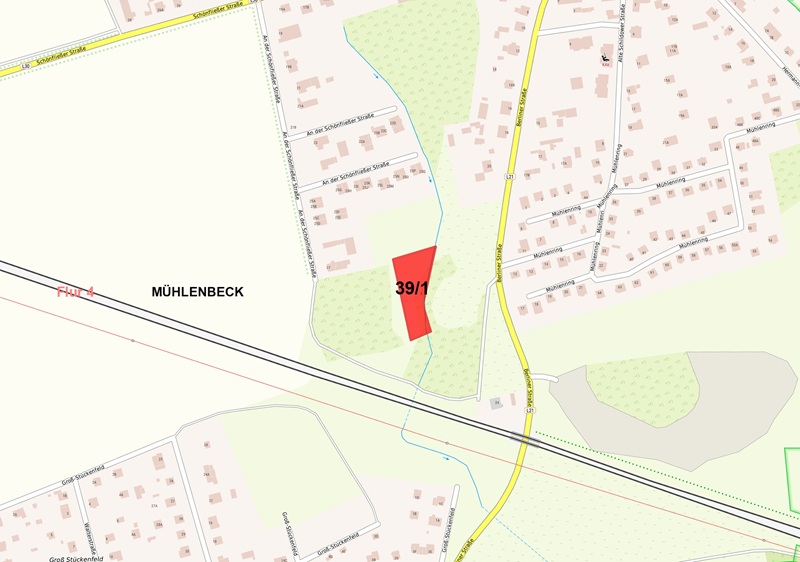 Der Verkaufsgegenstand ist Bestandteil einer größeren Fläche zwischen der Berliner Straße und der Straße An der Schönfließer Straße, hat aber keine eigene Anbindung an öffentliches Straßenland, d.h. es handelt sich um ein gefangenes Flurstück ohne gesicherte Zuwegung und eine Zuwegung ist nur über Flurstücke im Fremdeigentum möglich. Der Ersteher muss sich bezüglich der zukünftigen Zuwegung mit dem Eigentümer des bzw. der dafür zu nutzenden Grundstücke in Verbindung setzen. Ob auch künftig eine Zuwegung möglich ist, ist nicht klar.