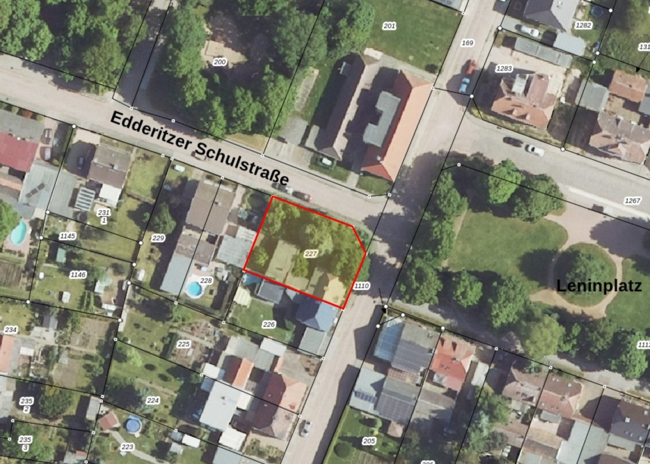 Das gegenständliche Grundstück liegt im westlichen Bereich der Ortslage Edderitz, im Kreuzungsbereich der Karl-Marx-Straße und der Schulstraße. In der näheren Umgebung befinden sich überwiegend ein- bis zweigeschossige Wohnhäuser in offener Bauweise.