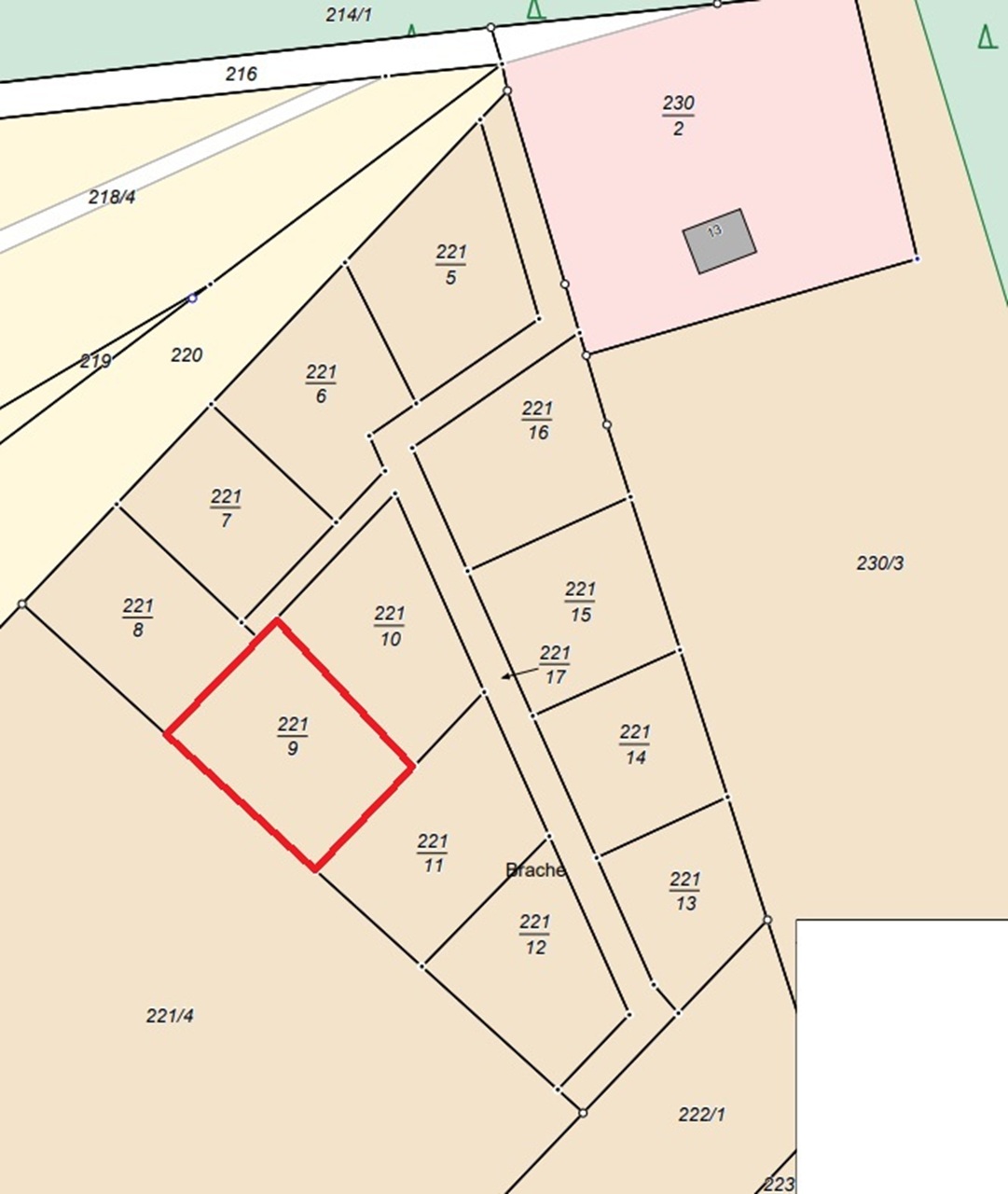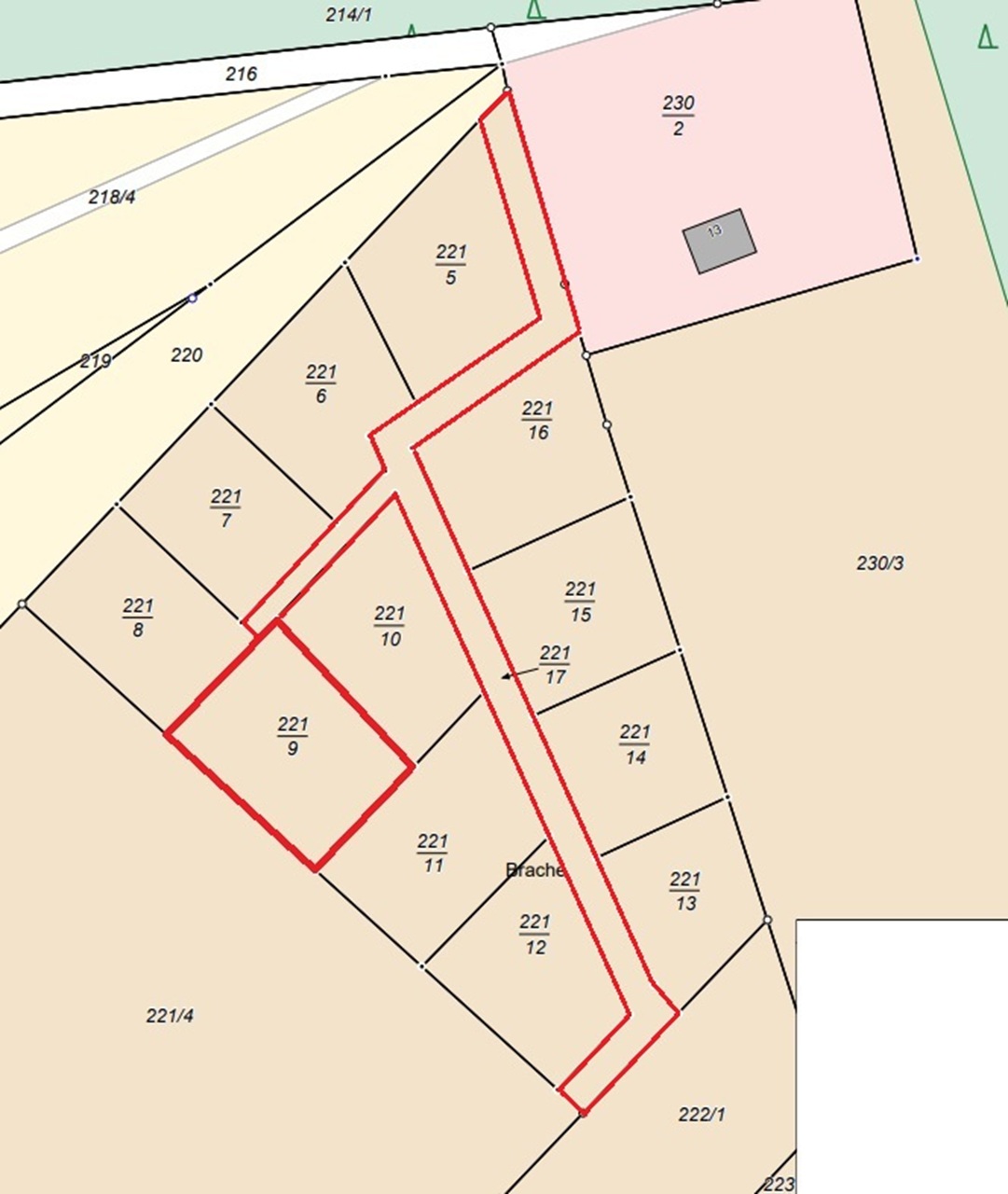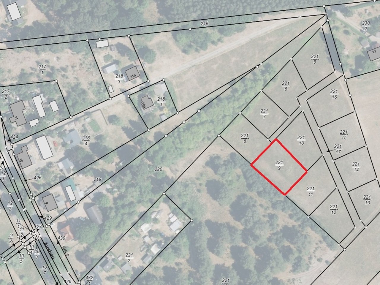 Lageskizze mit Umgebung Flurstück 221/9 und Wegeflurstück