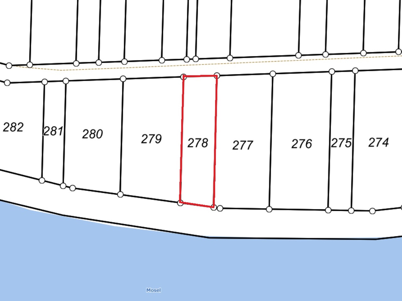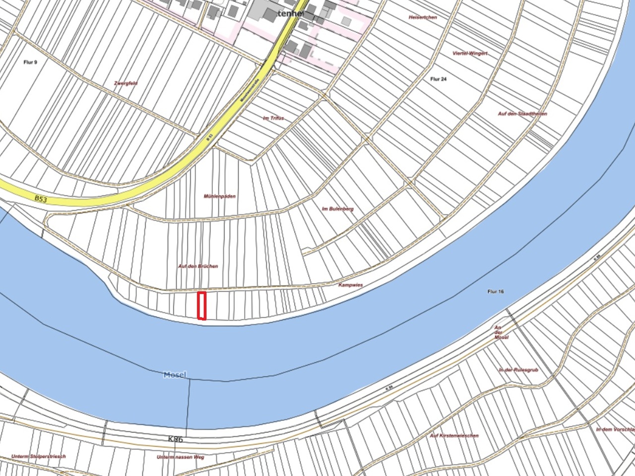 Der Verkaufsgegenstand liegt an der Mosel, hat aber lt. Kartenmaterial keine direkte Anbindung an die Wasserfläche, da noch ein schmales Fremdflurstück den Verkaufsgegenstand von der Mosel trennt.