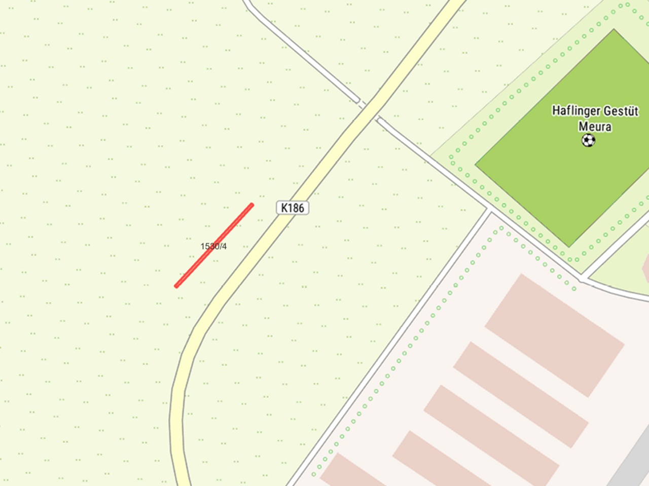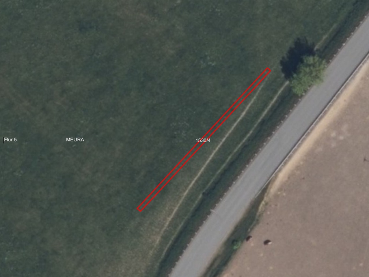Das Flurstück 1530/4 (54 m²) der Flur 5 ist ein Grünstreifen westlich der L2654.